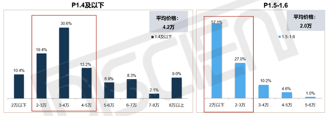 3、成交均價(jià):P1.5-1.6成交價(jià)格段集中度更高,P1.4以下成交價(jià)格段區(qū)間更分散;